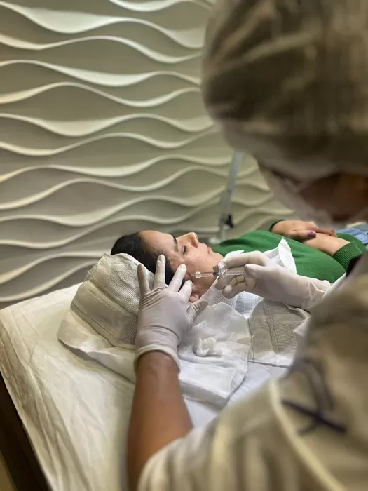 Aplicação de botox, ácido hialurônico ou bioestimulador para promover a melhor harmonização de acordo com o objetivo e anatomia facial da paciente.